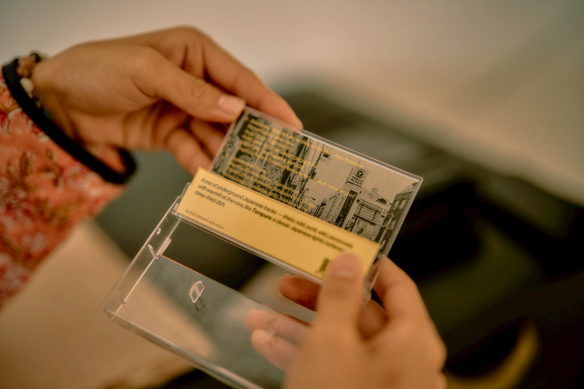 グラスに飲み物を注ぎ、カセットを選ぶ。