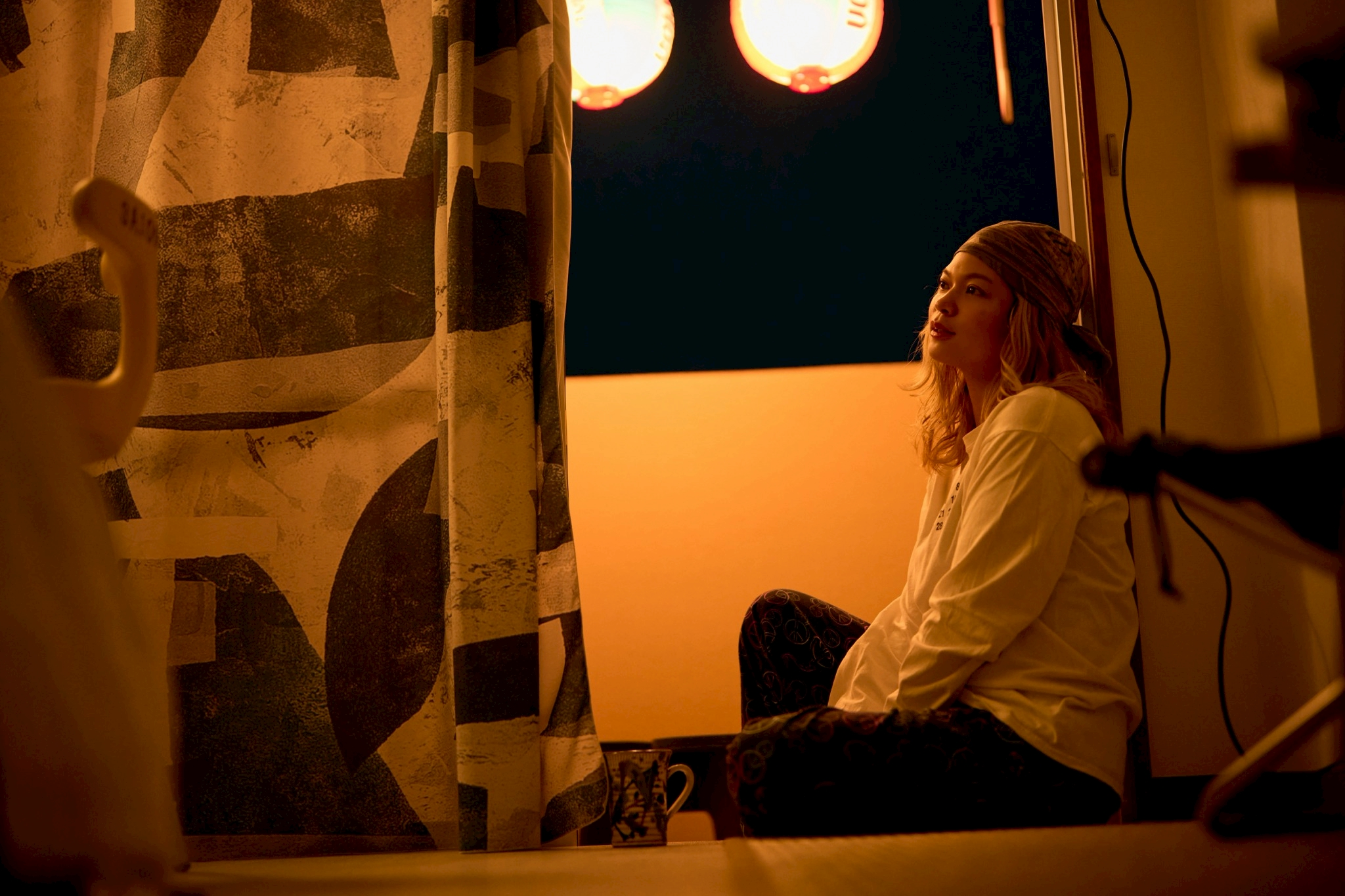 ベランダでやちむんのマグを手に外の空気を吸い、