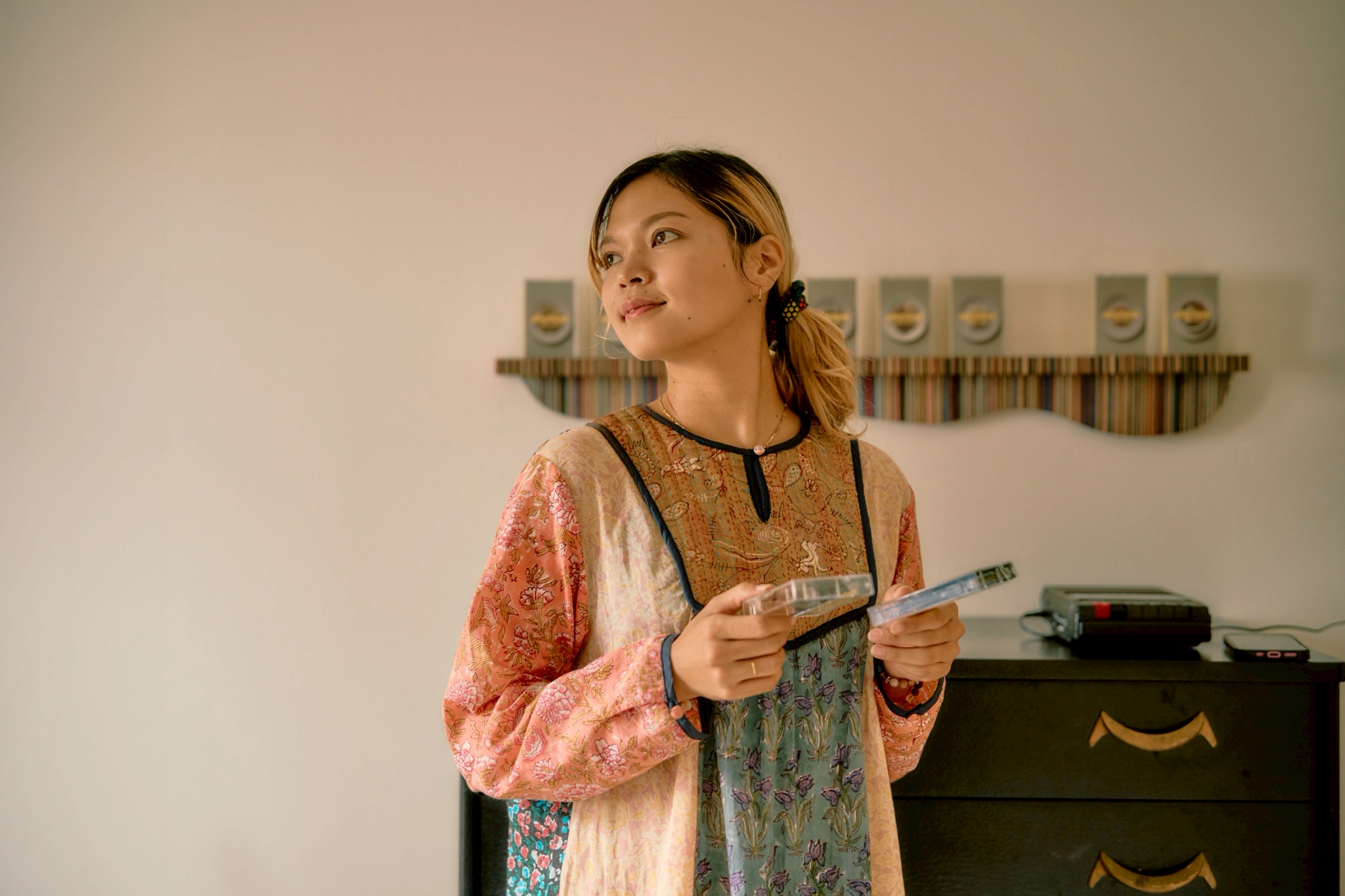 グラスに飲み物を注ぎ、カセットを選ぶ。